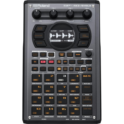 Bigger, better, faster, strongerThe SP-404MKII has everything people love about its predecessor—with some serious upgrades like 17 ultra-expressive pads and updated knobs for smooth, hands-on control. And beatmaking is even quicker with speedy boot time, swift project loading and sample import, and easy project access via 16 GB of internal storage. Longtime users and new beatmakers alike will feel right at home with the intuitive layout and classic SP effects, plus a revamped sampling and sequencing workflow, Skip Back Sampling for quick performance capture, DJ mode to mix beats live, and more. | Guerilla beatmakingPeople who make music with SP samplers love the rapid workflow, portability, and tactile approach they offer. The SP-404MKII takes this experience even further, retaining the lightweight-yet-rugged design while adding features that make it even easier to create in any scenario. Bang out beats anywhere with AA or mobile battery power, capture audio from or stream direct to your mobile device via USB, or collaborate with a partner using the dual headphones outputs and mic/guitar input. | A sampler with soulWith the SP404MKII’s vivid OLED screen and zoomable waveform view, sample editing is smooth like butter. Chop up samples by tapping out edit points in real time, or use auto chop to slice samples automatically. Then finesse them with envelope and pitch shift, and use the new resampling workflow to re-record patterns and effects layers for detailed sound design. And with Skip Back Sampling, you can instantly grab those golden moments by capturing up to 25 seconds of audio from your last performance. | All about effectsProcess, flip, and twist your sounds with legendary SP effects and a selection of new classics. SP staples like Vinyl Simulator and DJFX Looper are now joined with powerful additions that include Lo-fi, Cassette Simulator, and Resonator. Layer and route multiple simultaneous bus effects for intricate sound textures, or plug into the mic/guitar input and jam with ready-to-go Vocoder, Auto Pitch, and Guitar Amp Simulator effects. |